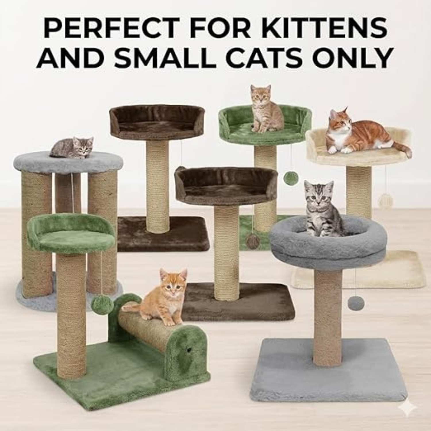 Keep your little feline active and happy with this Activity Kitten Cat Tree, specially designed for kittens and small indoor cats. With a compact 16-inch height, this cat tree for kittens is perfect for apartments, bedrooms, and small living spaces. The top seat perch offers a comfortable resting spot where your kitten can relax, nap, or observe surroundings, supporting natural climbing and resting instincts.