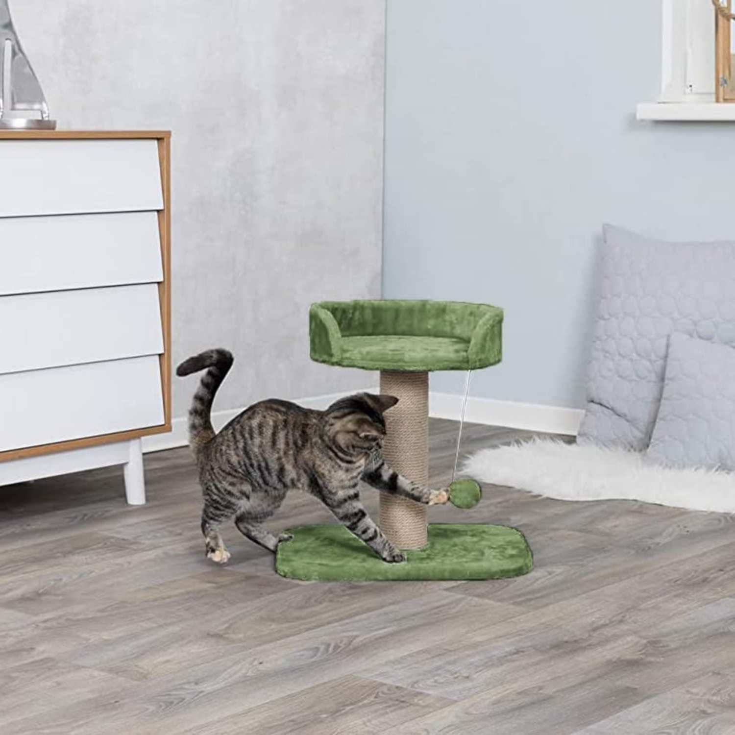 This kitten activity tree features a fun hanging ball toy that encourages playful interaction, improves coordination, and keeps kittens mentally stimulated. The durable jute rope scratching post helps promote healthy claw maintenance, supports natural scratching behavior, and prevents damage to sofas, carpets, and furniture. Designed as an all-in-one cat furniture solution, it works as a cat scratcher, play tower, and resting perch.