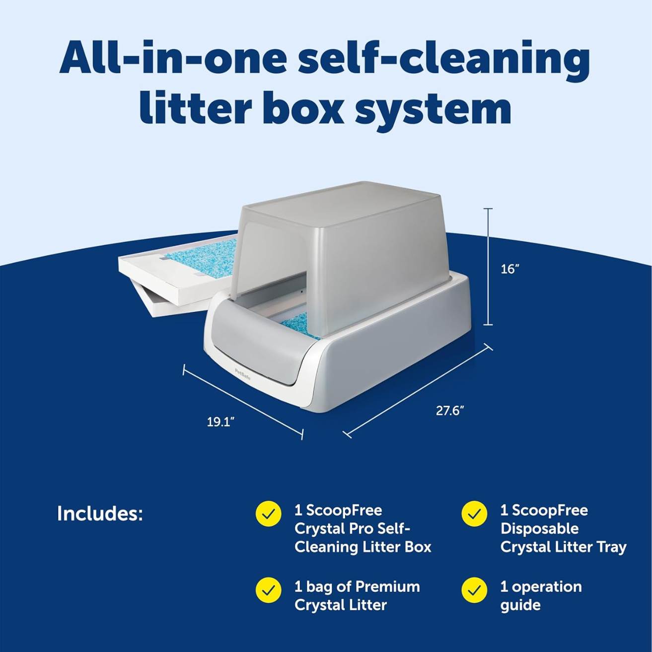 Keep your cat’s litter area clean with minimal effort using the ScoopFree Crystal Pro Legacy Automatic Cat Litter Box. Its top-entry, uncovered design gives cats easy access while reducing litter tracking. The motion-sensing system automatically rakes waste into a covered storage area after each use, so you don’t have to scoop daily.