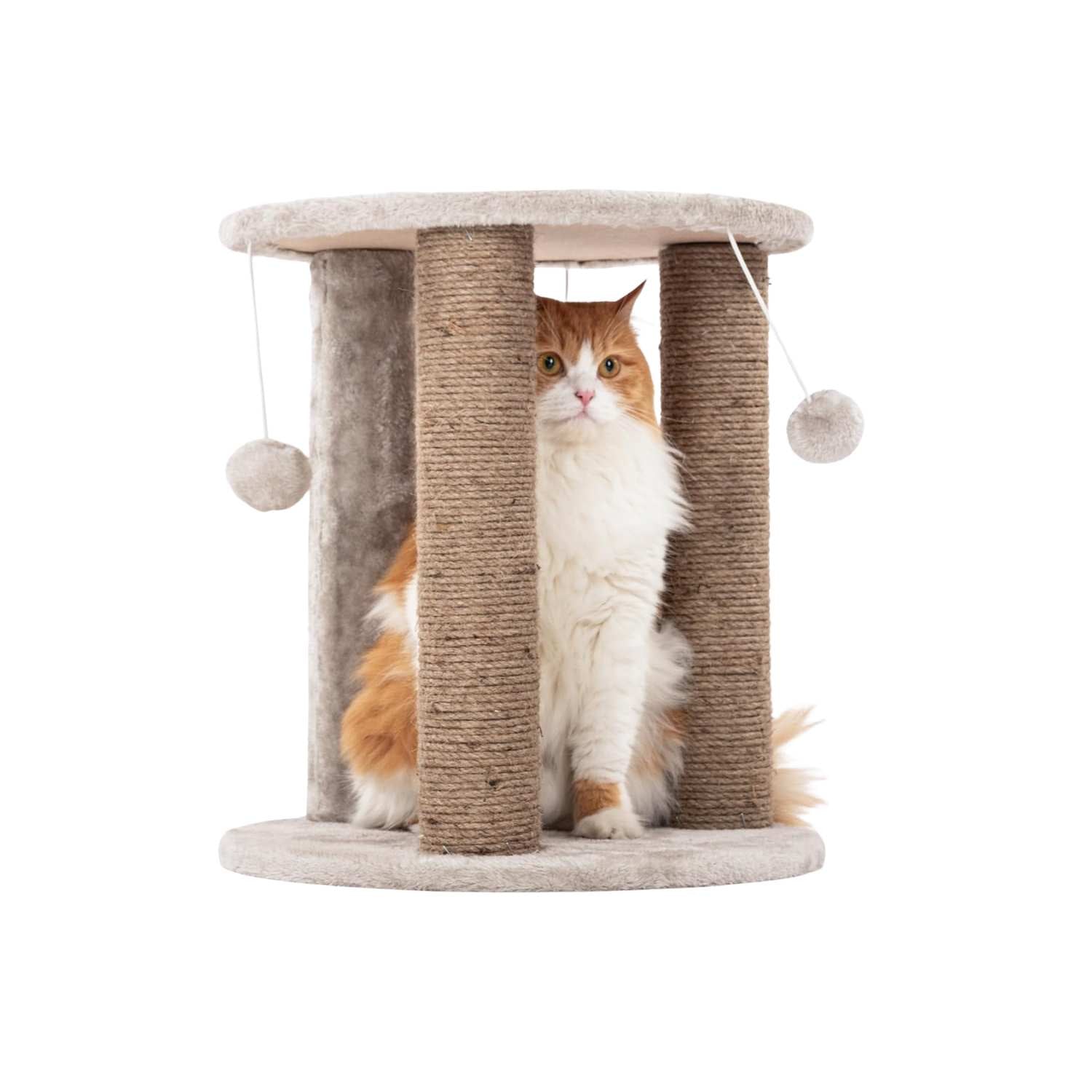 This round cat tower features multiple rope scratching posts wrapped in strong jute rope, making it ideal for aggressive scratchers and playful kittens. The sturdy base ensures excellent stability during jumping, climbing, and scratching sessions. The neutral beige color blends seamlessly with modern home décor, adding both function and style to your living space.