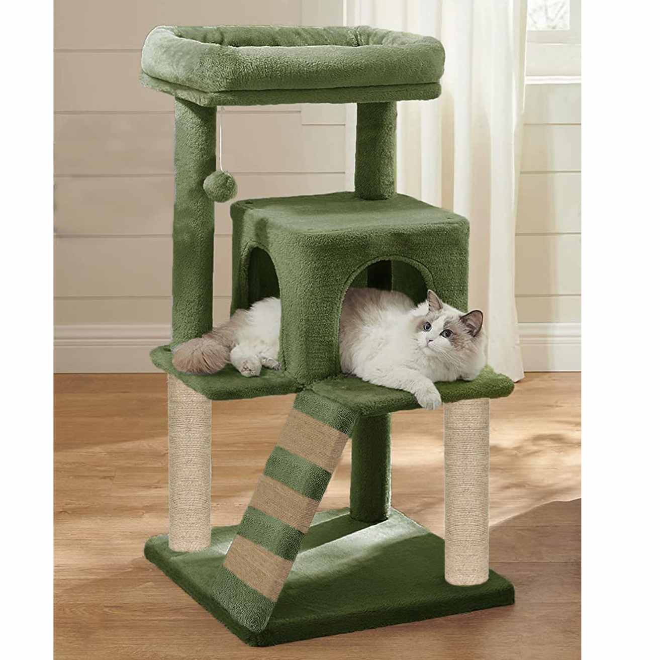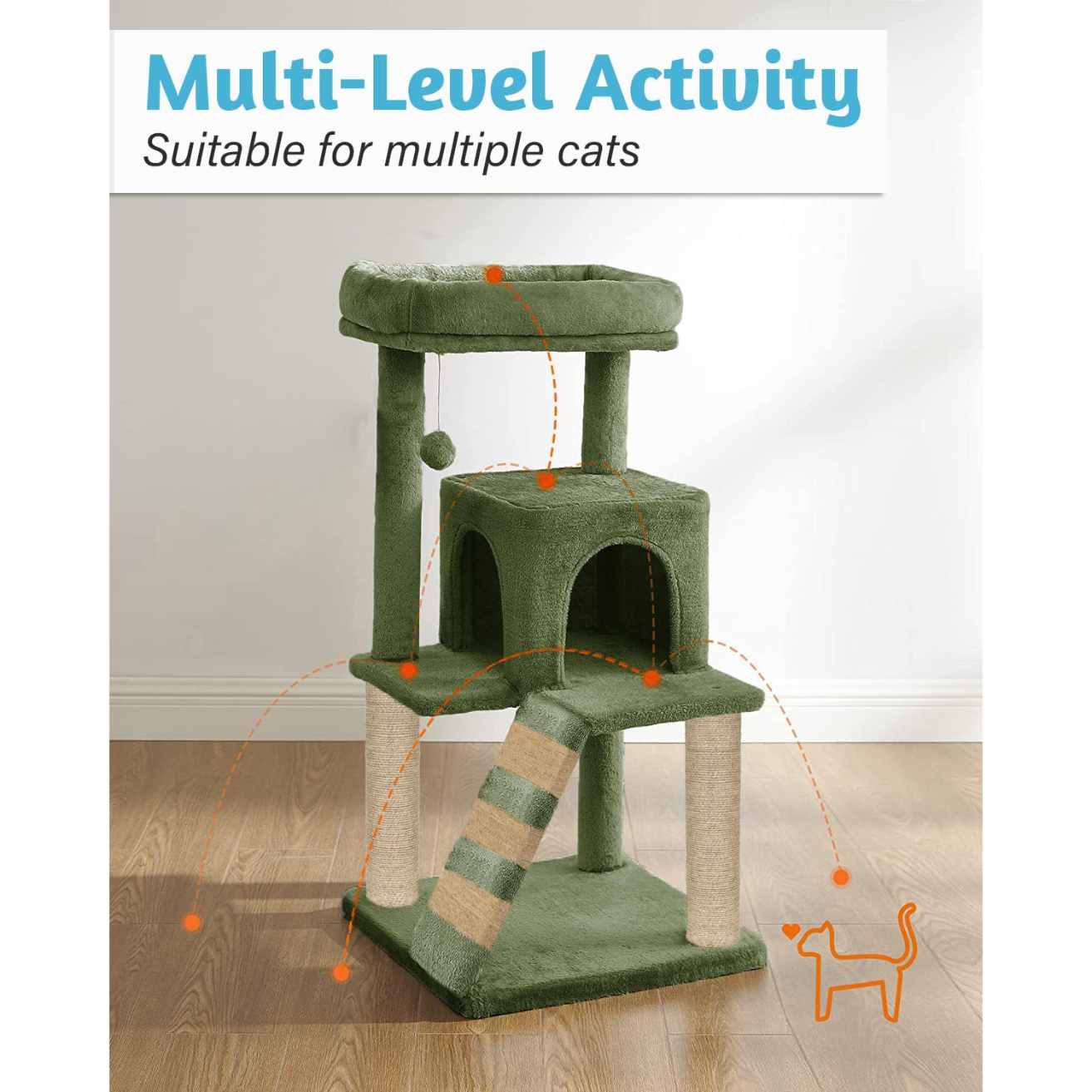 Give your kitten the perfect place to play, climb, and scratch with the Fur Fabric Cat Kitten Tree with Hanging Toy, Ladder & Jute Rope Scratching Post (39 Inch – Green). Designed especially for kittens and small cats, this compact cat tree supports healthy activity while keeping your home furniture protected.