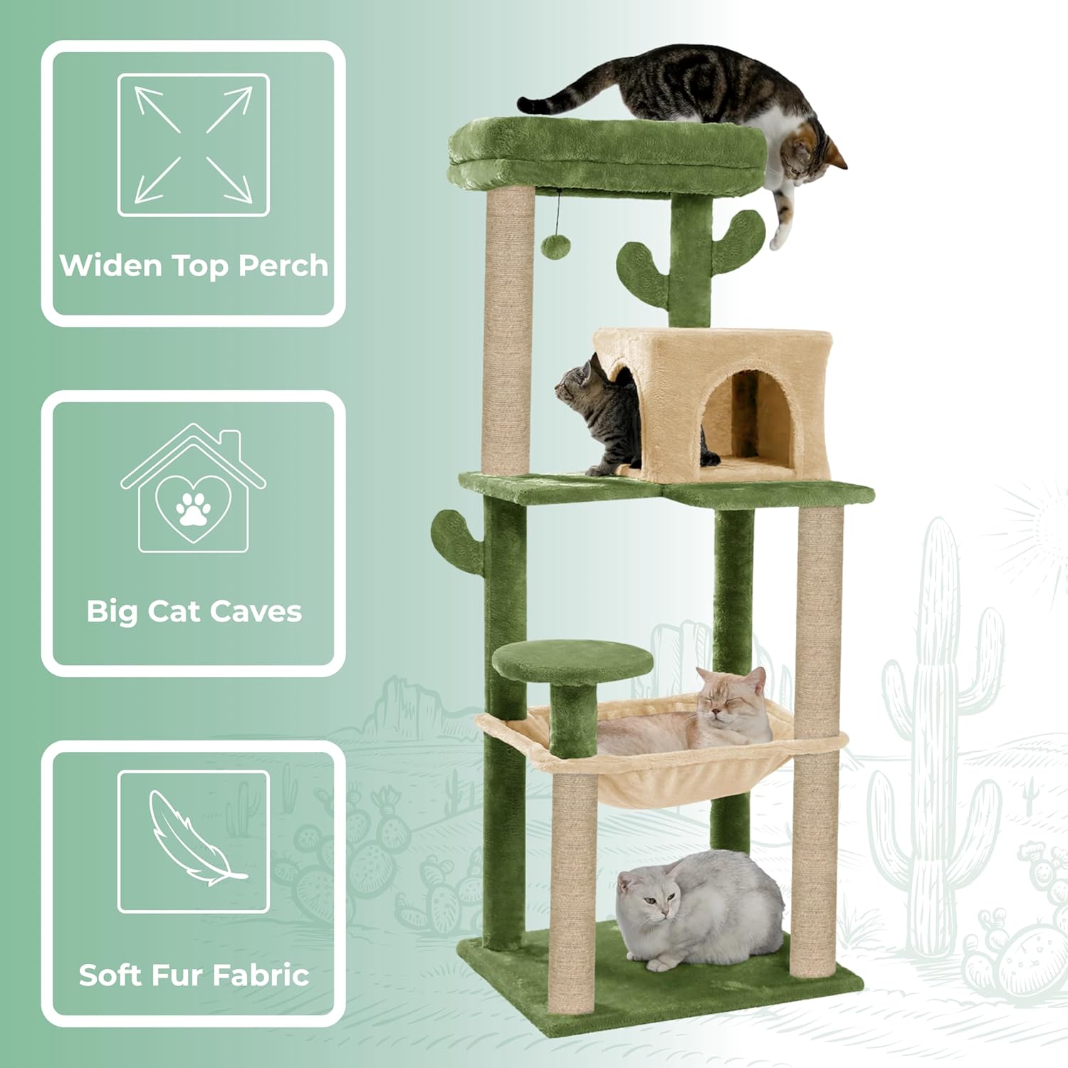 Scratching Posts: Reinforced jute-wrapped posts help cats sharpen nails and protect your furniture.