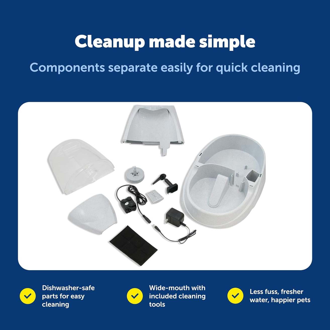 Featuring a built-in filtration system, the fountain removes impurities, odors, and debris to deliver clean, great-tasting water. The easy-to-clean design and non-slip base make it a convenient and safe choice for everyday use.