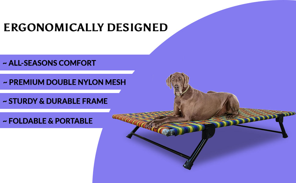 The folding iron bed, which is made with strong legs and breathable nylon mesh, will provide your huge dog with exceptional comfort and durability. Make it perfect for both indoor and outdoor use.