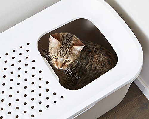 The large top opening allows easy entry and exit for your cat, while the lift-up lid makes cleaning quick and hassle-free. For added convenience, a handy external hook lets you hang your litter scoop when not in use. This litter box is an ideal solution for pet parents struggling with mess, leaks, and scattered litter.