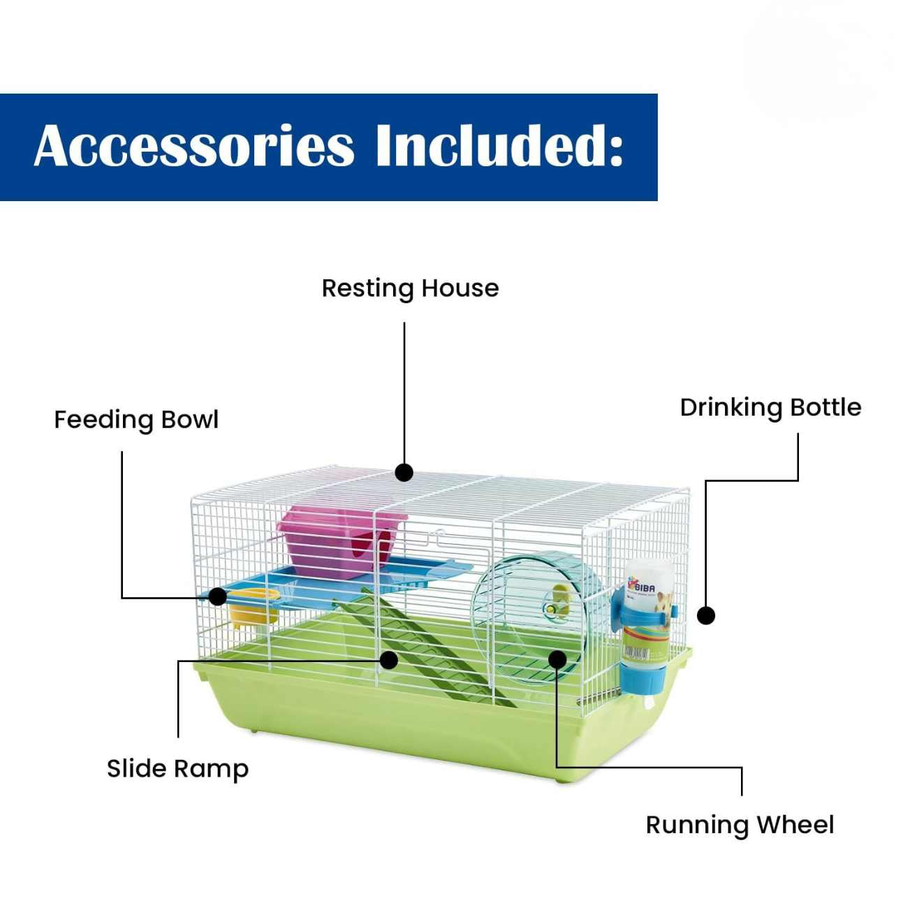 The Martha Double Hamster & Guinea Pig Polyethylene Cage is a complete, fun, and safe activity home for small pets. Designed to keep your hamsters and guinea pigs active and happy, this cage features a cozy house, two elevated platforms, a ladder, a feeding bowl, an exercise wheel, and a water bottle.