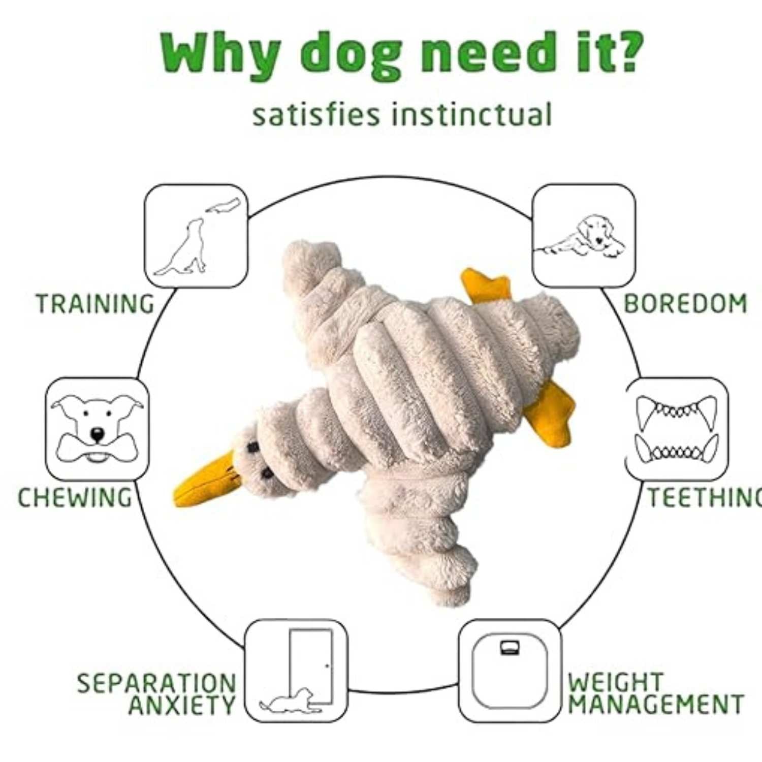 This 12-inch dog chew toy is perfect for light to moderate chewers and helps reduce destructive chewing behavior. Whether used as a puppy teething toy, fetch toy, cuddle buddy, or training reward toy, it supports healthy playtime and bonding between pets and owners.