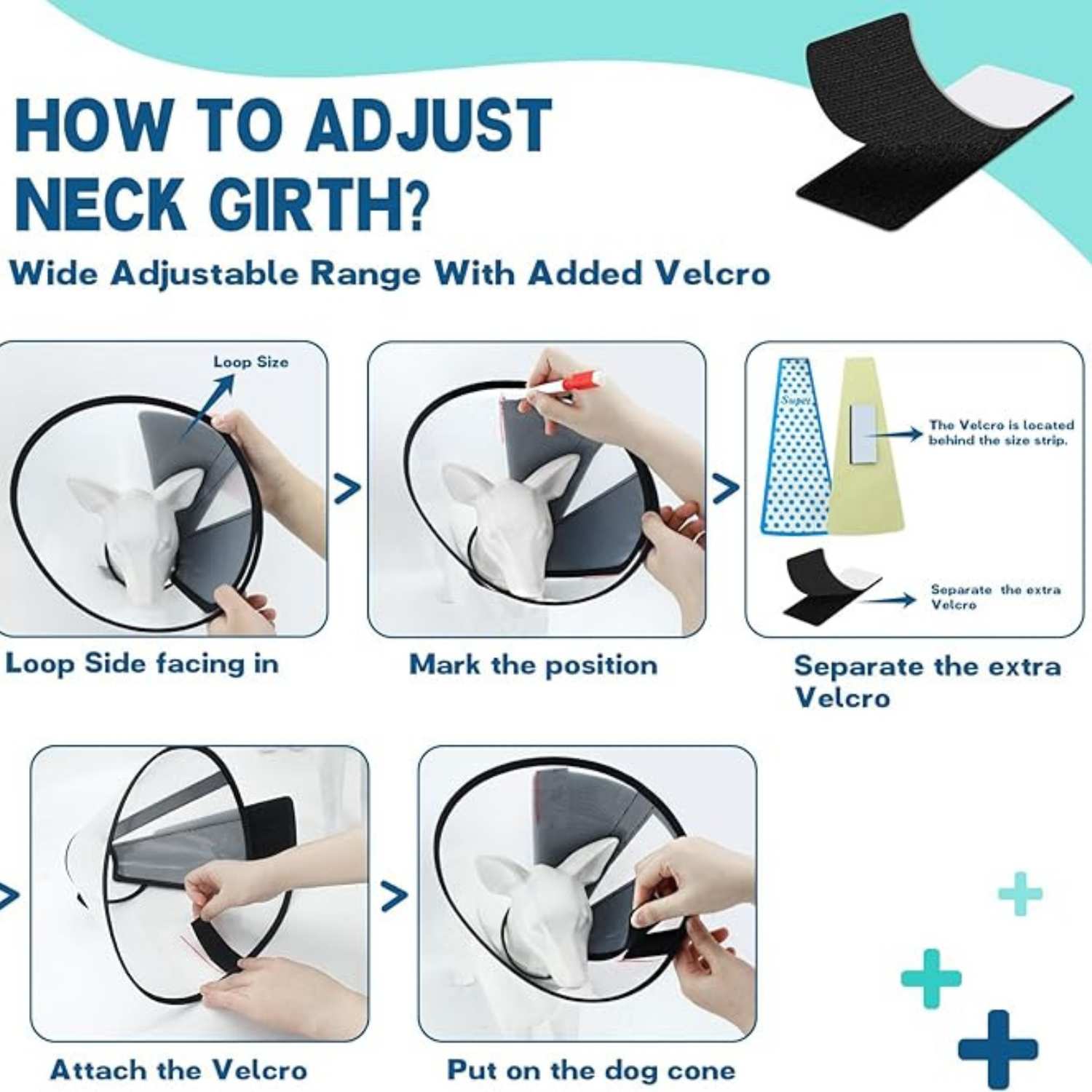 Designed with a strong Velcro closure, this adjustable dog cone and cat cone collar provides a secure and customized fit for small, medium, and large pets. The soft yet sturdy design allows your pet to eat, drink, and sleep comfortably while wearing the protective E-collar.