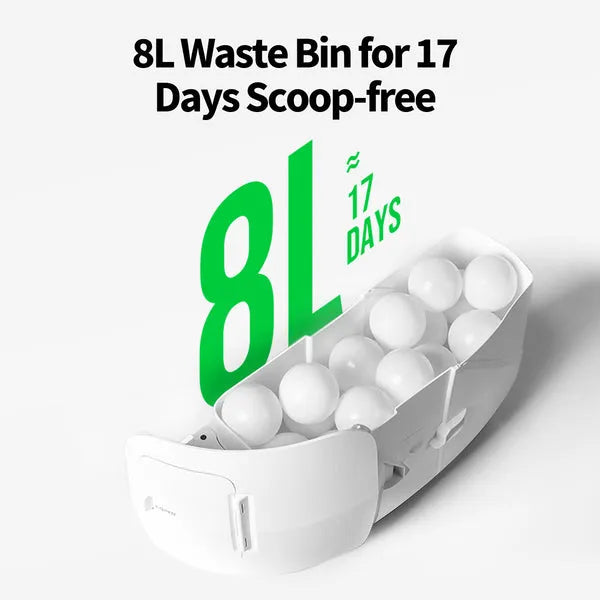 Built with intelligent safety sensors, the Purobot Max Pro detects your cat’s presence and pauses operation instantly for complete protection. The smart waste separation system efficiently collects clumps into a sealed compartment, helping control odors and maintain a clean environment. Ideal for single and multi-cat households, this electric litter box reduces mess and minimizes contact with waste.